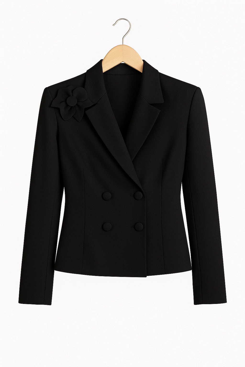 O toque fashion e moderno fica por conta da flor, feita artesanalmente no próprio tecido da peça. E o tecido escolhido foi a alfaiataria à base de crepe e viscose, que além de um caimento à cara do verão, permite que a peça combine perfeitamente com as demais peças da coleção como o short Priscila e a calça Maria.