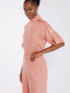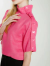 Possui gola larga com corte afastado do pescoço e o charme dos abotoamentos nas laterais da gola, ombro e manga que, além de charme, garantem versatilidade a peça que pode ser usada com diferentes abotoamentos. O linho puro traz um frescor elegante.