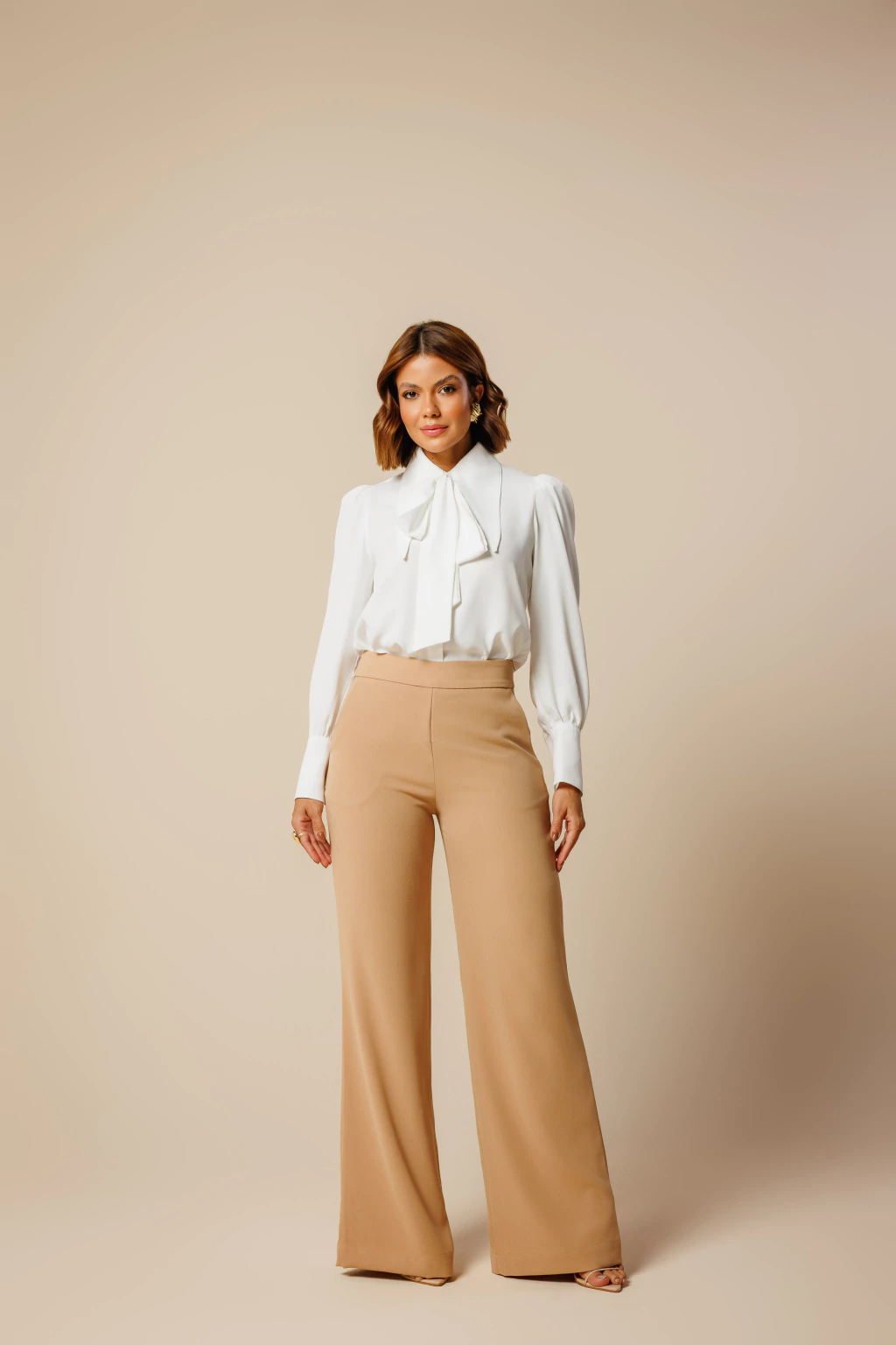 A Calça Pua é a definição de elegância atemporal e versatilidade. Com modelagem reta e impecável, cintura alta e cós largo, valoriza a silhueta e garante conforto ao longo do dia. Seu fechamento lateral em zíper oferece praticidade e acabamento discreto, reforçando a proposta minimalista e clássica da peça.