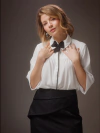 A Camisa Ana combina perfeitamente com a saia Ana e traz o mesmo elemento de destaque, as flores.