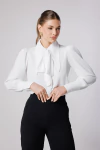 O grande destaque desta peça está na máxi gola, um detalhe fashionista que transforma a camisa em algo único e especial. Para ainda mais versatilidade, acompanha uma faixa no mesmo tecido, que pode ser usada como laço na gola ou para marcar a cintura, adaptando-se ao seu estilo e à sua criatividade.