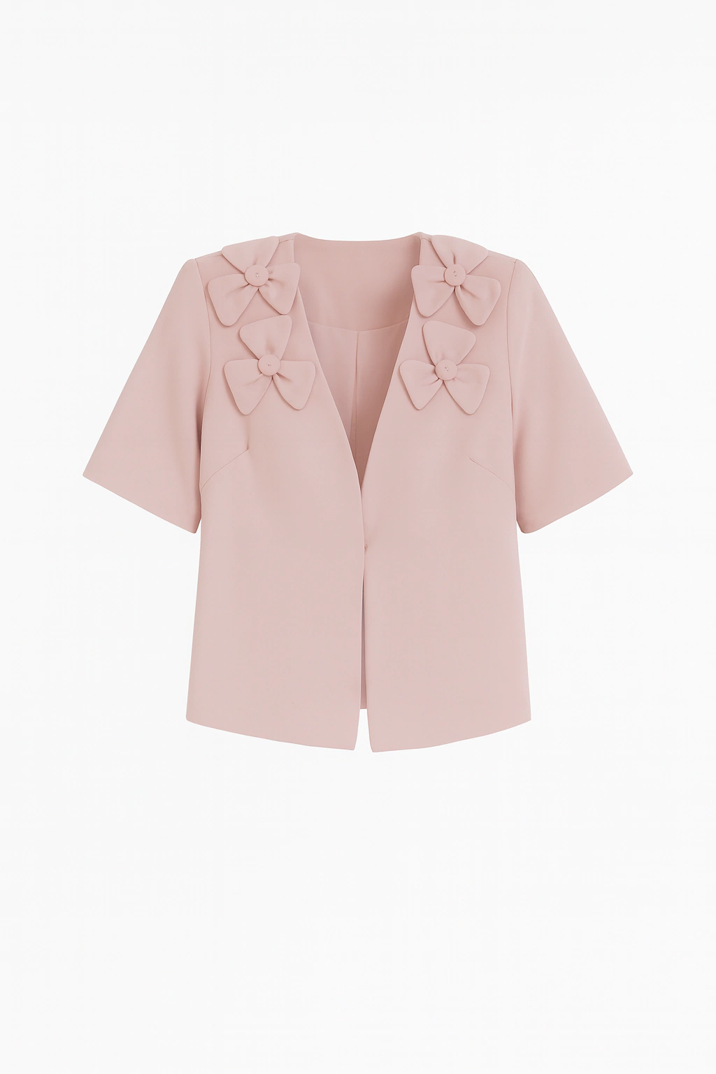 O Casaqueto Ana é todo forrado, com comprimento na altura da cintura e decote V que termina com abotoamento interno por colchete de metal.
