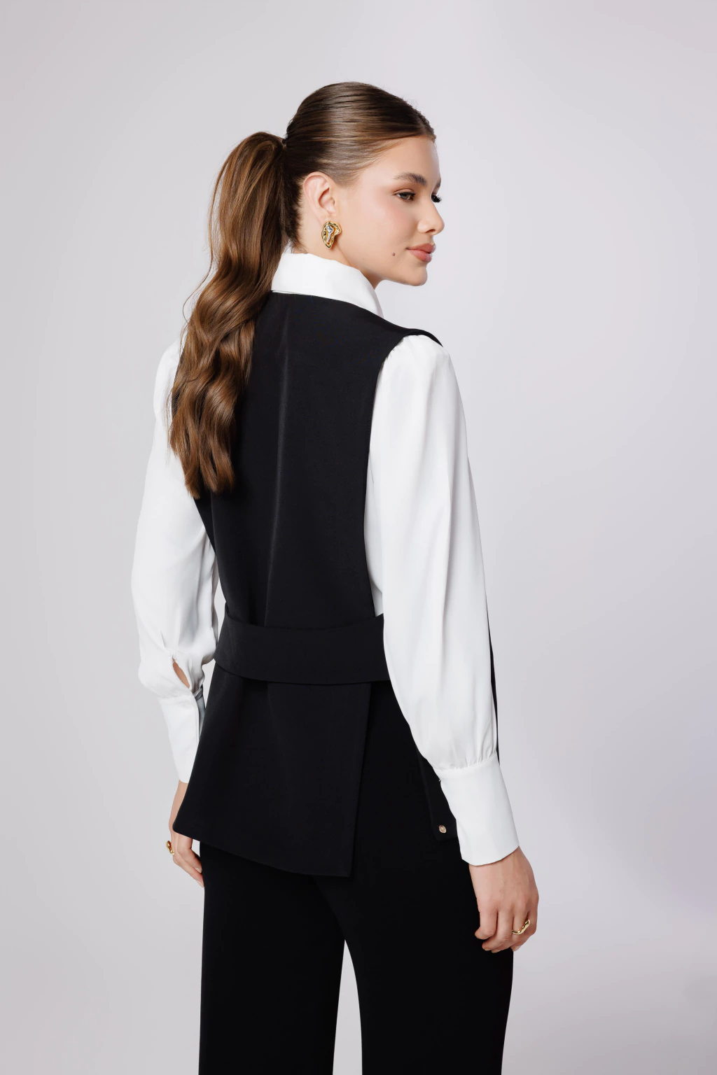 Ideal como terceira peça, o Colete Hulda transforma qualquer produção, conferindo um visual clássico, atemporal e extremamente sofisticado.