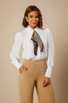 O Lenço Sulamita carrega uma combinação de cores sofisticadas — marrom com bege — em tecido de toque sedoso, garantindo caimento suave e confortável. Sua estampa gravataria, inspirada nos clássicos padrões de gravatas, traz desenhos repetidos que unem listras, losangos e paisleys, resultando em um visual marcante e atemporal.