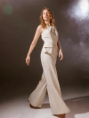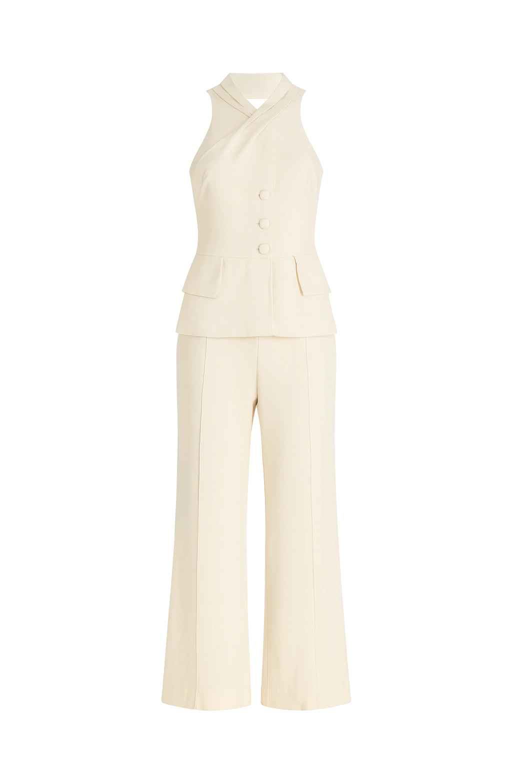 O caimento perfeito da peça é conseguido pelo tecido, um crepe de alfaiataria à base de viscose que garante peso e fluidez.
