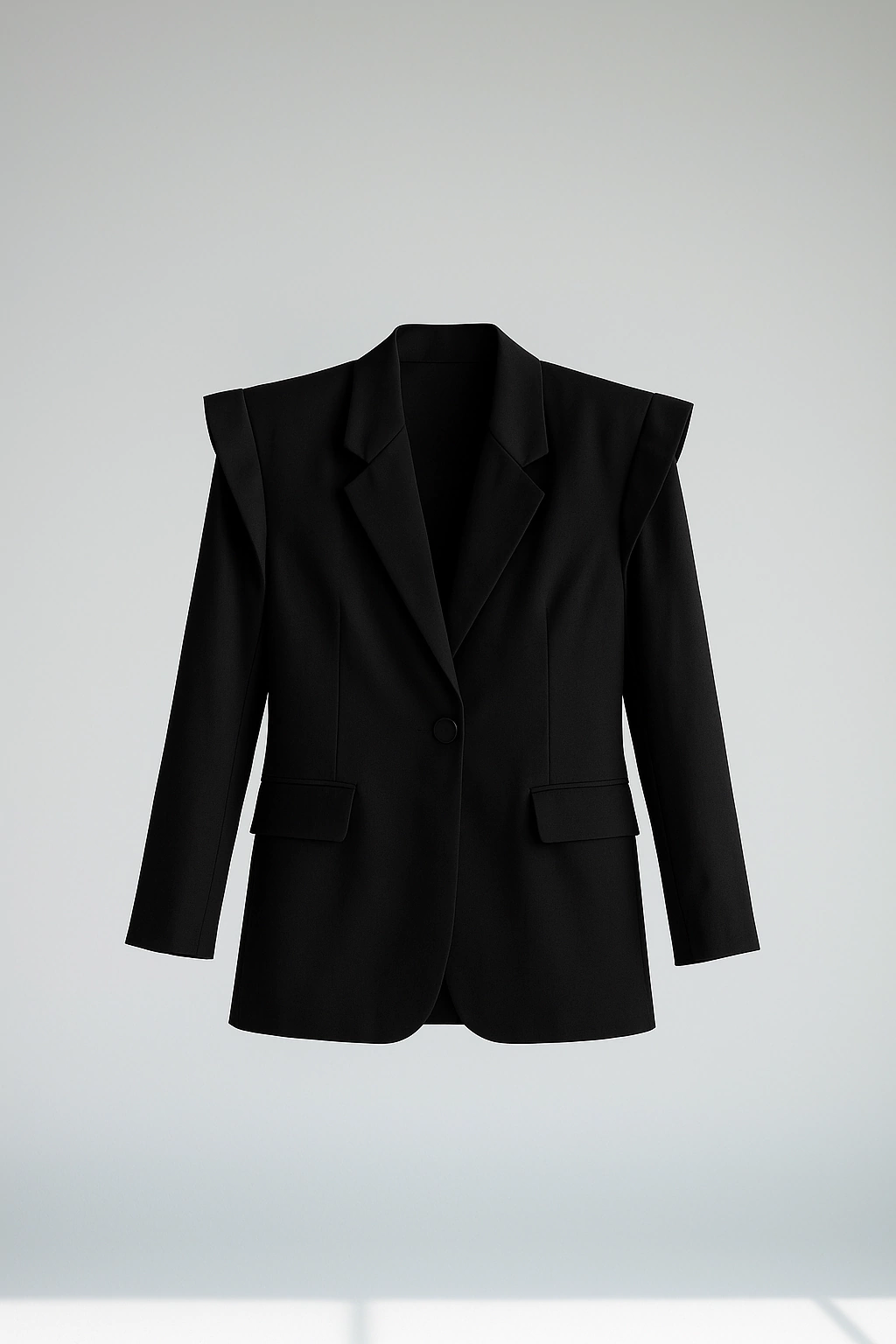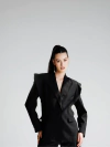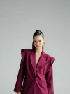 Blazer todo forrado com modelagem reta e oversized. Seu fechamento frontal se dá por um único botão encapado e nos punhos fechamento por três botões menores.