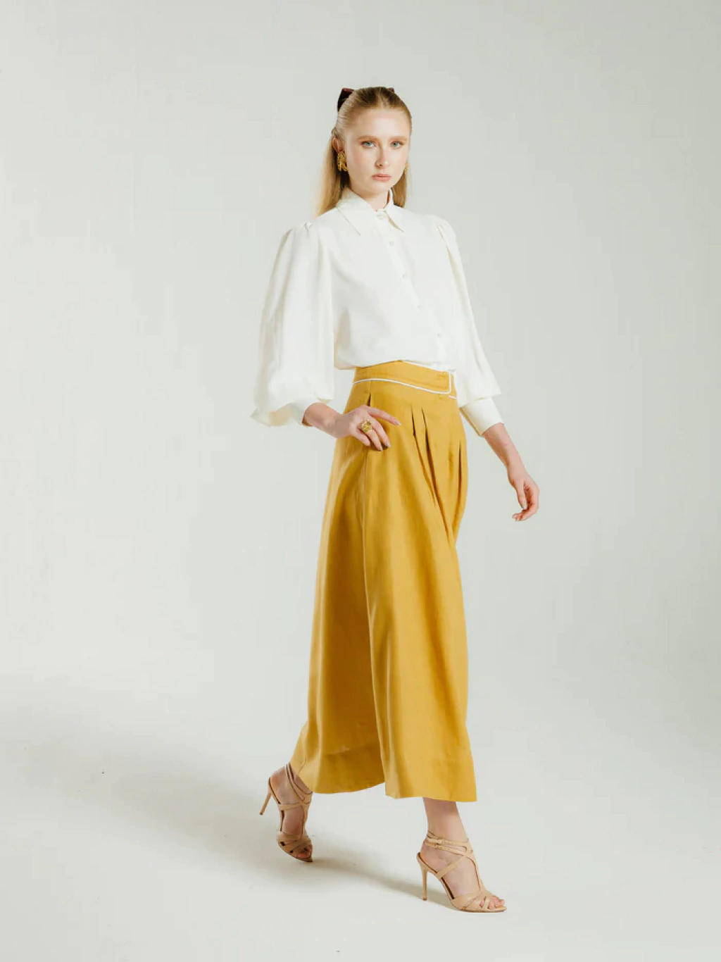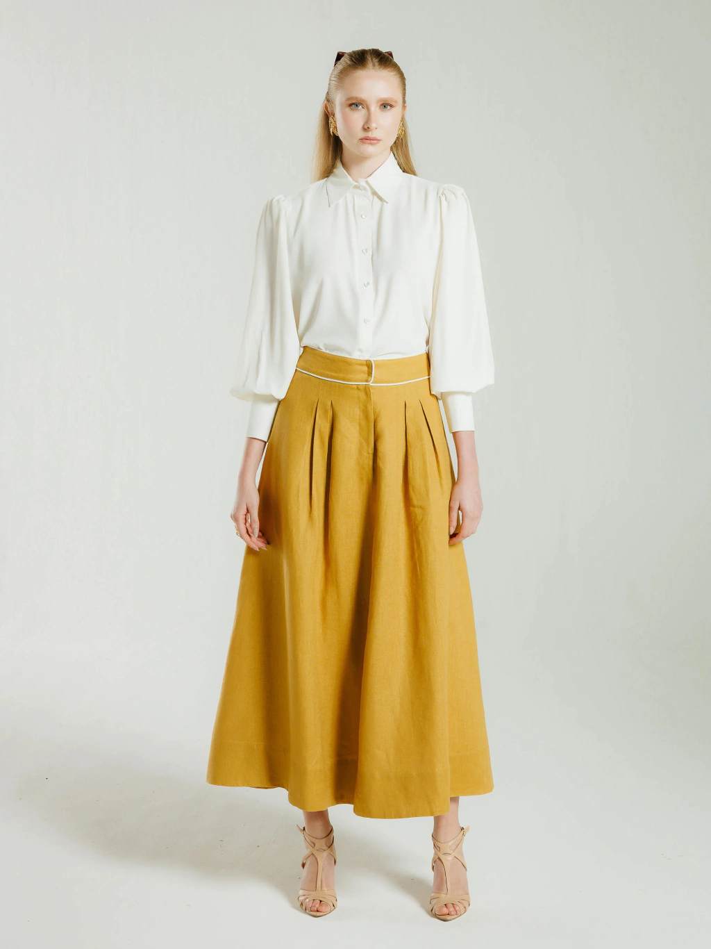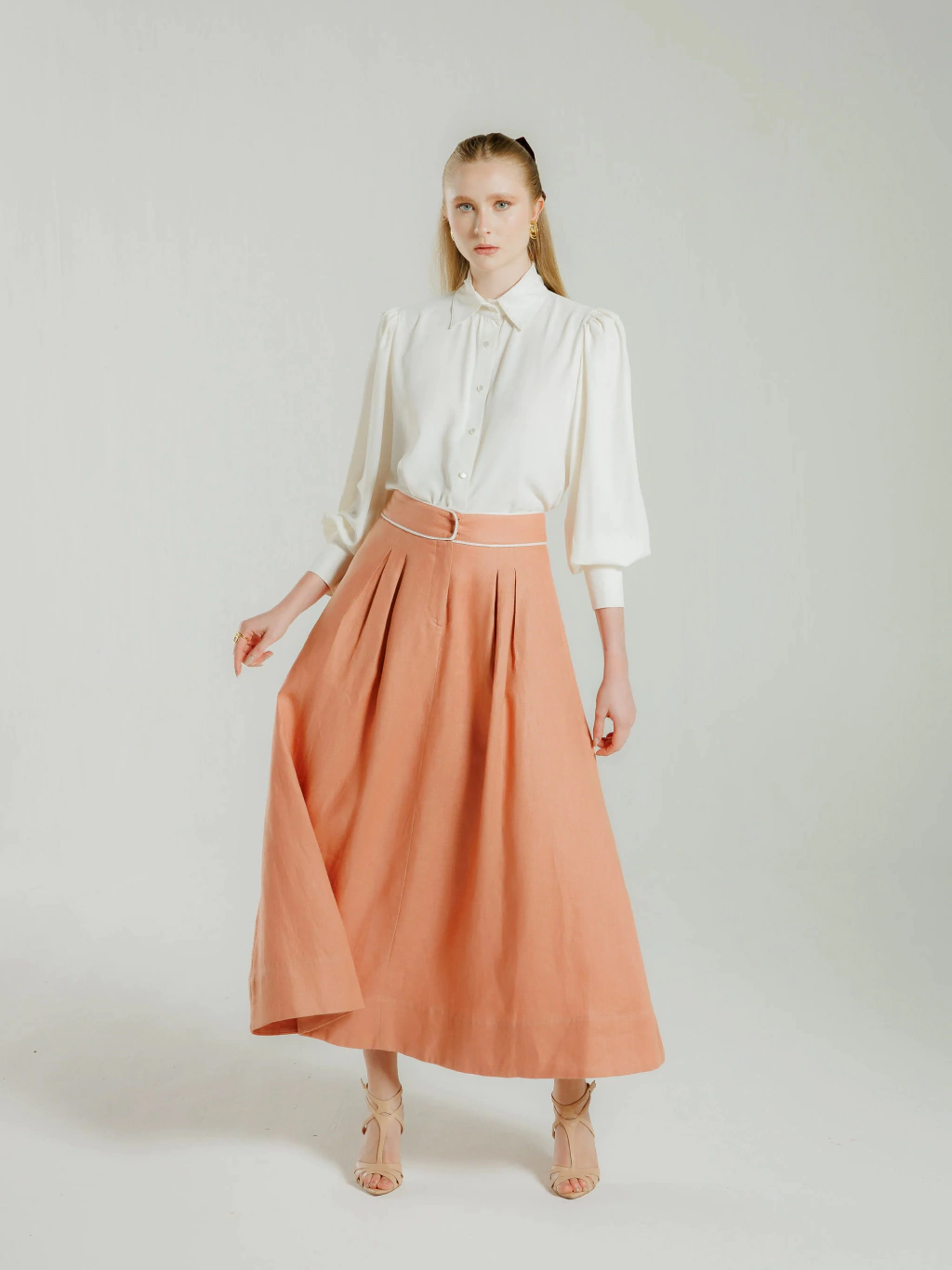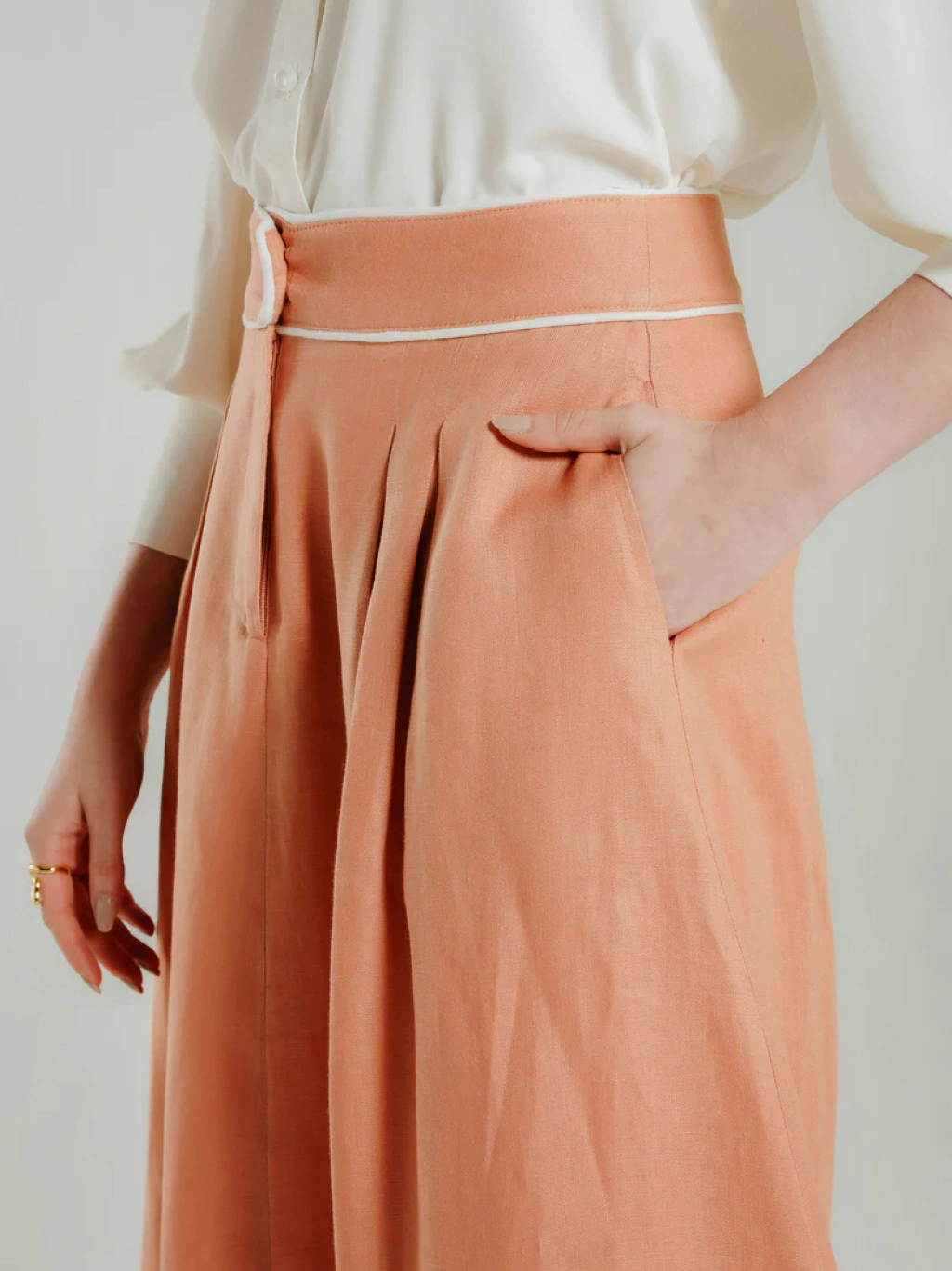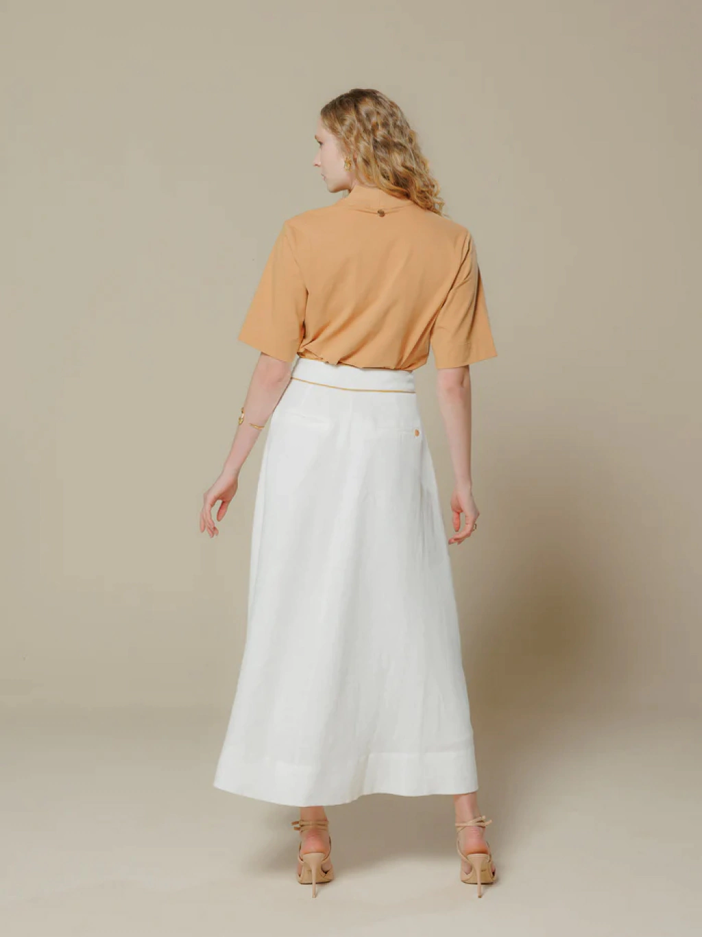 Sinônimo de feminidade, a saia Isabel é feita em linho 100% e forrada em tecido 100% algodão.
