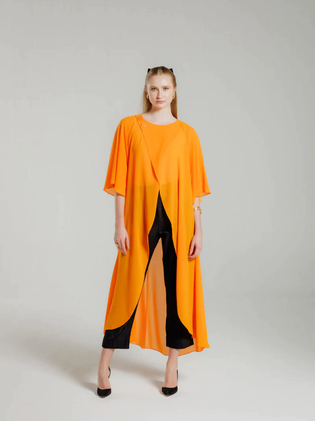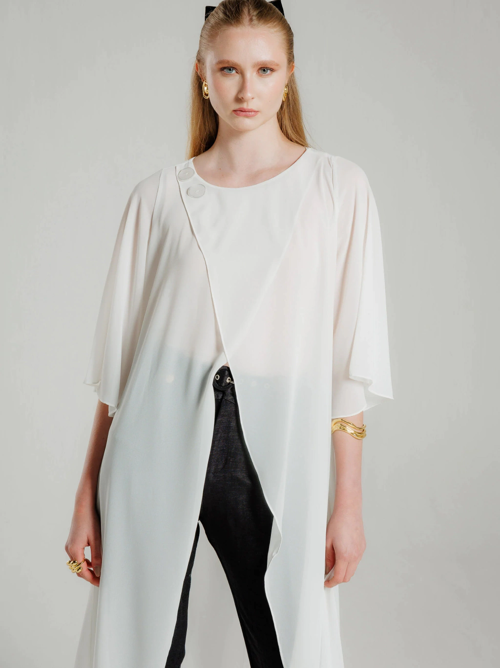 Com modelagem ampla e traspassada na frente com detalhe no decote de dois botões em massa. Perfeita para usar com uma calça em alfaiataria ou jeans. E porque não, usá-la como uma saída de praia também.
